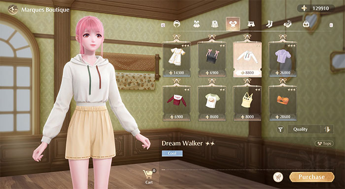 Hãy chú ý đến các NPC có biểu tượng áo sơ mi trên đầu hoặc các tòa nhà được đánh dấu bằng biểu tượng áo sơ mi trên bản đồ, vì các NPC và cửa hàng này sẽ bán quần áo. Những trang phục này đơn giản hơn nhiều, nhưng rất tuyệt nếu người chơi có gu thẩm mỹ để tạo ra một bộ trang phục đẹp mắt. Vì gacha chủ yếu cung cấp váy, nên các cửa hàng này cung cấp nhiều trang phục đơn giản hơn cho trang phục hàng ngày của Nikki.