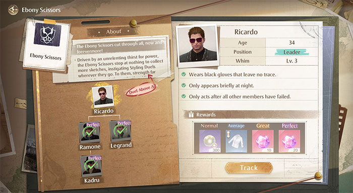 Một số NPC mà người chơi cần hạ gục trong các cuộc đấu phong cách sẽ cung cấp các bản phác thảo trang phục nếu đánh bại họ. Người chơi có thể kiểm tra xem NPC nào sẽ tặng gì thông qua nút Factions trên menu Pear-Pal. Lưu ý rằng họ sẽ tặng bản phác thảo, nghĩa là game thủ sẽ cần phải chế tạo trang phục thực tế sau khi mở khóa công thức.