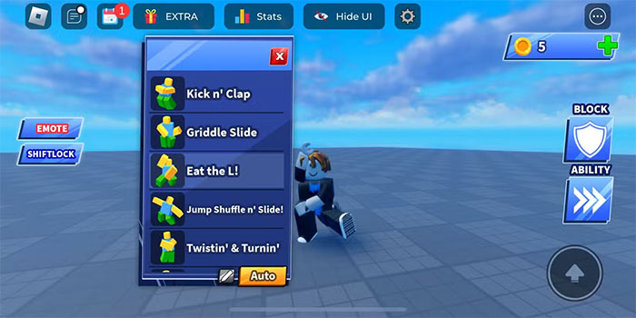 Nếu đang chơi Blade Ball trên thiết bị di động, hãy nhấp vào tùy chọn Emote ở bên trái màn hình. Thao tác này sẽ mở một menu nơi người chơi sẽ thấy tất cả các biểu tượng cảm xúc có sẵn.