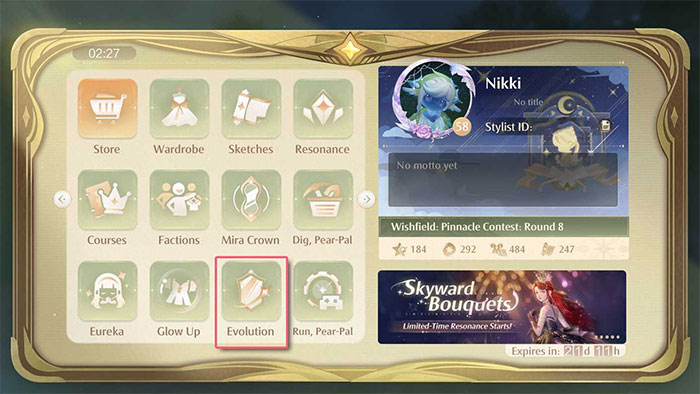 Người chơi có thể tìm thấy trang Clothing Evolution trong Infinity Nikki bằng cách mở Pear-Pal rồi chọn tùy chọn Evolution. Trên trang, người chơi có thể thấy tất cả các trang phục họ sở hữu và các dạng tiến hóa khả dụng của chúng.