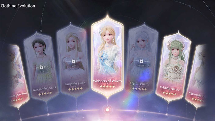 Là một trò chơi mà người chơi có thể kết hợp và phối hợp các mảnh quần áo, không có gì ngạc nhiên khi một số vật phẩm có thể được tìm thấy với nhiều màu sắc khác nhau. Người chơi thể mở khóa các màu thay thế thông qua một quá trình gọi là tiến hóa trong Infinity Nikki.