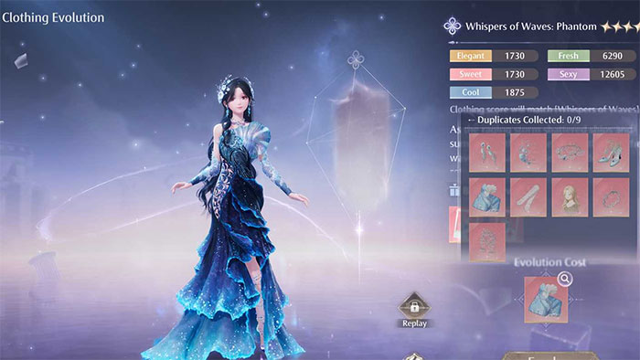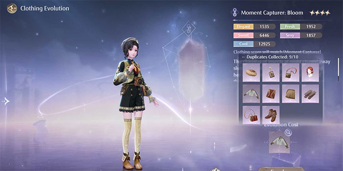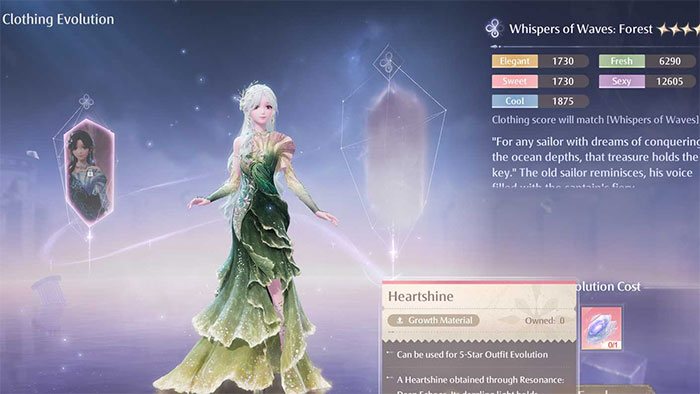 Trang phục 4 sao trong Infinity Nikki không có Heartshine. Thay vào đó, để tiến hóa chúng, người chơi chỉ cần có tất cả các mảnh trùng lặp.