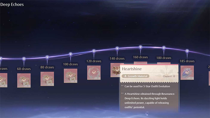 Ví dụ, để nhận Heartshine đầu tiên cho trang phục Standard Banner, người chơi phải tích lũy 185 lần rút thăm. Trong khi đó, đối với Heartshine: Dance Till Dawn, cần có 180 lần Resonance Attempt.