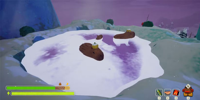 Sau đó, hãy tìm Capybara đang thư giãn trong suối nước nóng và chơi một đoạn nhạc trực tiếp bằng bugle. Điều này sẽ mở khóa huy hiệu Animal Serenading và như hầu hết các thành tích khác trong game, người chơi sẽ nhận được phần thưởng cho nhân vật - Kril Hat.