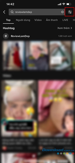 Bước 3: Nhấn vào biểu tượng Bộ lọc ở phía bên phải của hộp tìm kiếm.