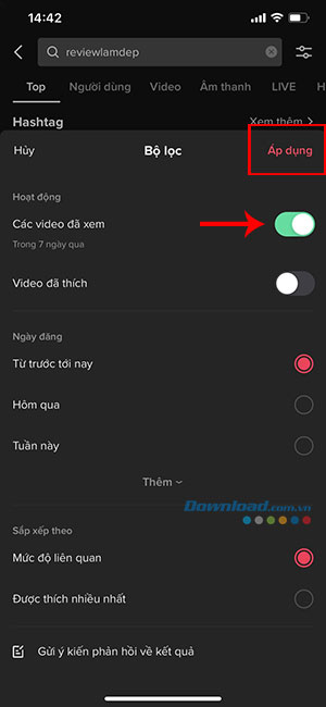 Việc tìm kiếm các video TikTok đã xem thật dễ dàng. Tất cả những gì người dùng cần làm là sử dụng một bộ lọc tìm kiếm đơn giản.