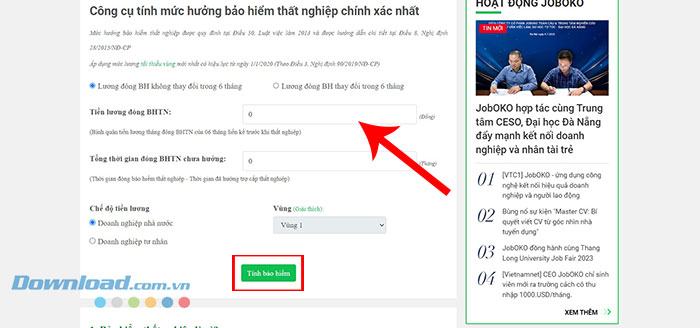 Bước 1: Truy cập Công cụ tính mức hưởng bảo hiểm thất nghiệp chính xác nhất của Joboko.