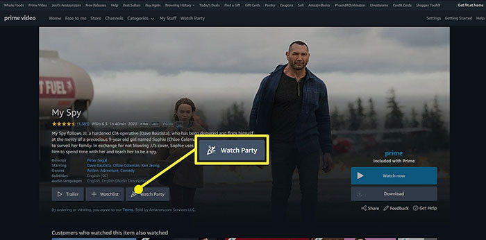 Giống như Disney+, Amazon Prime Video có sẵn tính năng xem phim online cùng người khác mà không cần cài đặt, được gọi là Prime Video Watch Party. Những người tham gia xem phim có thể xem trên bất kỳ thiết bị nào và yêu cầu tất cả phải đăng ký Amazon Prime Video.