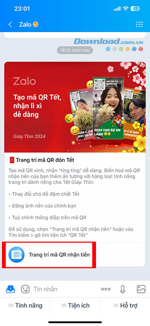 Nhân dịp Tết Giáp Thìn 2024, Zalo đã bổ sung thêm tính năng trang trí cho mã QR. Với mã QR được trang trí với giao diện Tết đẹp mắt, hoặc ảnh của chính mình, thỏa sức tùy chỉnh thông điệp, việc nhận lì xì trở nên thú vị hơn bao giờ hết. Trong bài viết này, hãy cùng tìm hiểu cách trang trí mã QR đậm chất Tết trên Zalo để nhận lì xì dễ dàng.