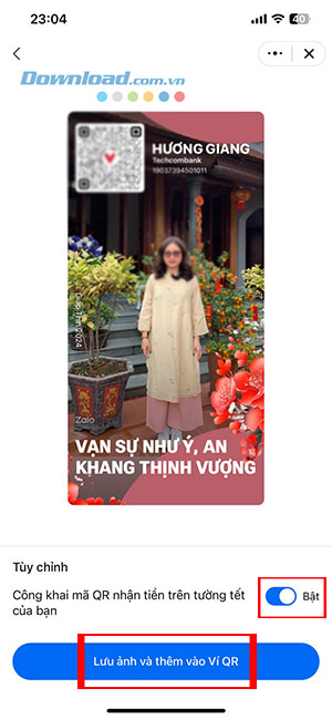 Bước 5: Cuối cùng, bật công tắc tại mục Công khai mã QR nhận tiền trên tường tết của bạn để những người trong danh sách bạn bè sẽ nhìn thấy và “ting ting” lì xì năm mới cho bạn.