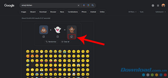 Bước 3: Kết hợp 2 biểu tượng cảm xúc bất kỳ để tạo ra một emoji mới. Mọi người cũng có thể sao chép biểu tượng emoji mới đó để dùng hoặc gửi cho bạn bè và người thân.