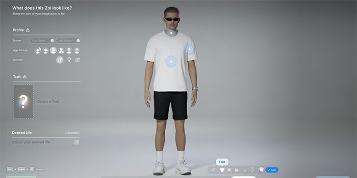 Hãy chọn món đồ mình muốn tùy chỉnh và bắt đầu chỉnh sửa nó. Người chơi có thể điều chỉnh độ dài của tay áo và lai áo/quần, thay đổi kiểu cổ áo, điều chỉnh độ ôm (rộng, chật), cũng như áp dụng các màu sắc và họa tiết khác nhau. Khi đã hài lòng, người chơi có thể tiếp tục các bước tiếp theo đó là thêm thành viên gia đình và chọn thành phố mà Zoi sẽ sinh sống.