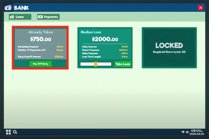 Nhìn chung, khoản vay đáng giá mặc dù người chơi phải trả thêm tiền lãi. Dòng tiền đột ngột đổ vào sẽ giúp mọi người phát triển siêu thị của mình một cách nhanh chóng và bắt đầu tạo ra nhiều tiền hơn nữa.