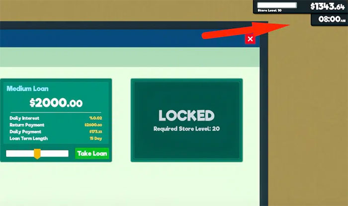 Các khoản vay trong trò chơi này rất hữu ích và có thể giúp ích cho mọi người ở giai đoạn nào đó. Tiền được dùng để mua những nâng cấp cho việc phát triển siêu thị nhưng ban đầu rất khó để có nhiều tiền dự phòng.