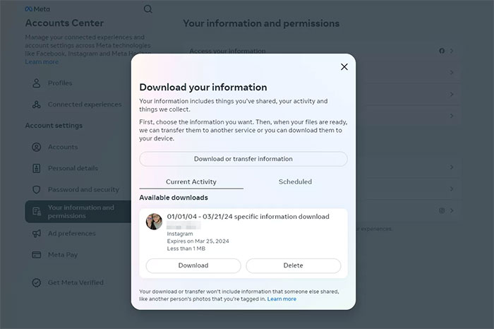 Bước 1: Tải xuống dữ liệu Instagram, chắc chắn chọn tùy chọn HTML.