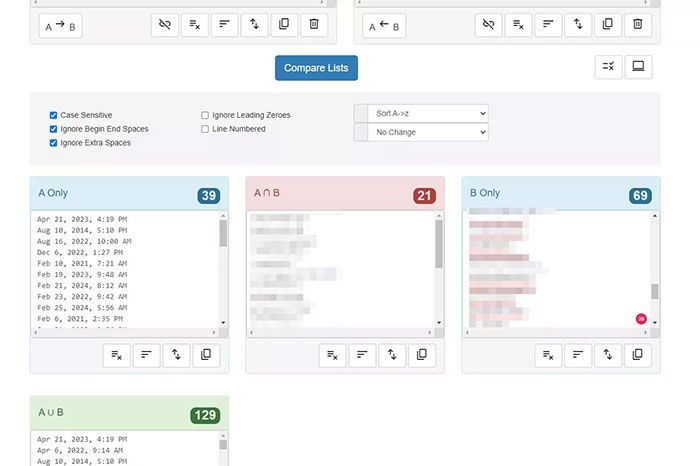 Bước 5: Thay đổi tùy chọn sắp xếp thành Sort A -> Z, sau đó chọn lại Compare Lists. Cuộn xuống danh sách B Only, qua ngày tháng, cho đến khi thấy tên người dùng. Đây là những người dùng bạn theo dõi nhưng không theo dõi lại bạn.