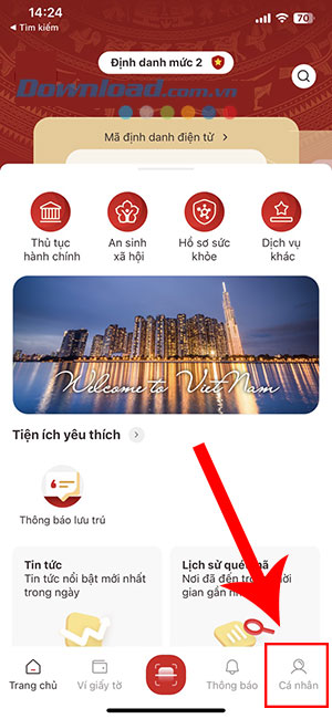 Bước 3: Trên giao diện chính, nhấn vào tab Cá nhân.