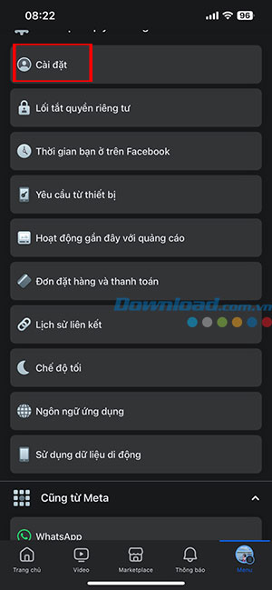 Bước 2: Trong menu Cài đặt mở rộng, tiếp tục nhấn vào Cài đặt.