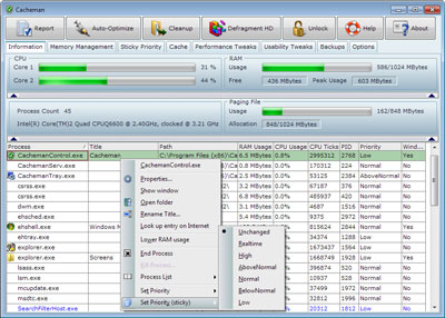 Cacheman là một giải pháp thay thế cho việc mua thêm RAM. Nếu bạn không có đủ chỗ trong bản mạch chủ để cắm thêm RAM, thì có lẽ chương trình này sẽ hữu ích. Nó không ngốn nhiều bộ nhớ và thực sự có thể giúp các ứng dụng chạy nhanh hơn.