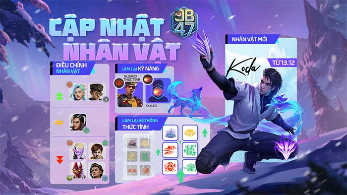 Các nhân vật được làm lại, điều chỉnh cân bằng bao gồm: Alvaro, Skyler, Tatsuya, Tôn Ngộ Không, Ryden, Kairos, Hayato, Lila, Nairi.