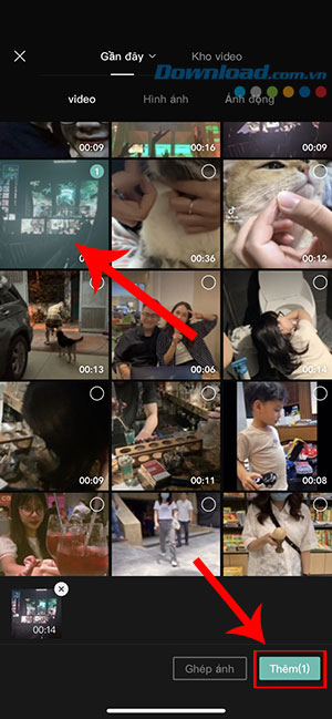 Bước 1: Mở CapCut trên thiết bị và nhấn vào Dự án mới. Sau đó chọn video bài hát mà mọi người muốn thêm lời bài hát và nhấn Thêm.
