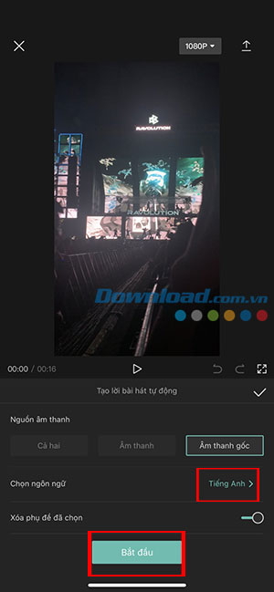 Bước 3: Chọn ngôn ngữ của bài hát nhấn Bắt đầu. Hiện tính năng này chỉ hỗ trợ 5 ngoại ngữ và chưa có Tiếng Việt.