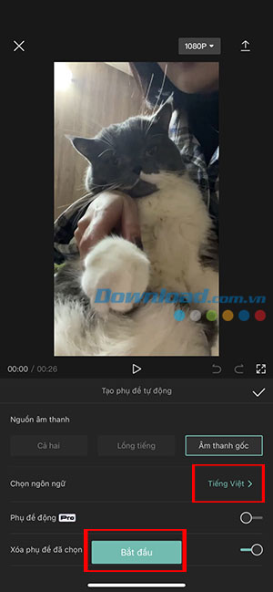 Bước 4: Nhấn nút Bắt đầu và chờ quá trình tạo phụ đề tự động hoàn tất.