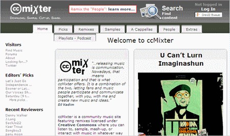Đây là trang âm nhạc cung cấp các bản remix và sample thuộc bản quyền của Creative Commons, nó cũng bao gồm nhiều track được chia sẻ không tính phí. Trang này tổ chức rất tốt, với các nhóm phân loại và chọn lọc. Tính năng “Download this page” cho phép bạn download tất cả những thứ bạn chọn một lần duy nhất. Nói chung, CCMixter có những bản MP3 được chọn lọc kỹ càng, nó không dành cho những trình chiếu thường thường, phải là người biết ứng dụng âm nhạc mới thấy CCMixter thật hữu ích.