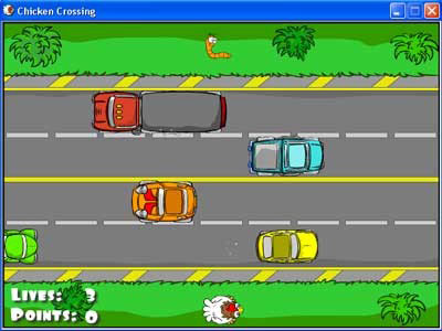 Vì sao chú gà trong game C2 lại cố băng qua đường cho kỳ được mới thôi trong khi xe cộ đang tấp nập? Đơn giản chỉ bởi nó đã phát hiện ra một con sâu đang nằm bên kia đường! Hãy ấn phím cách để bắt đầu cho cuộc thử thách cực kỳ nguy hiểm này, sử dụng các phím mũi tên của keyboard để điều khiển chú gà, tránh xe và ăn ngay con sâu.