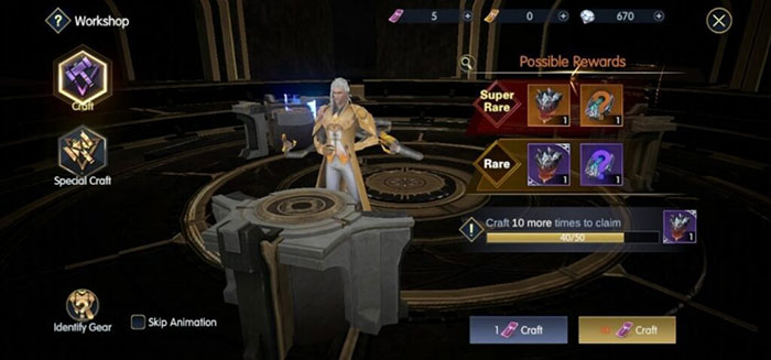 Người chơi có thể chế tạo các vật phẩm thông qua xưởng để có được những vật phẩm tốt hơn. Vật phẩm được chế tạo thông qua thẻ chế tạo hoặc sử dụng kim cương. Có 2 chế độ chế tạo là General và Special. Game thủ có thể chế tạo các vật phẩm huyền thoại thông qua Special và các vật phẩm từ chế tạo General được dùng để tăng sao cho vật phẩm.