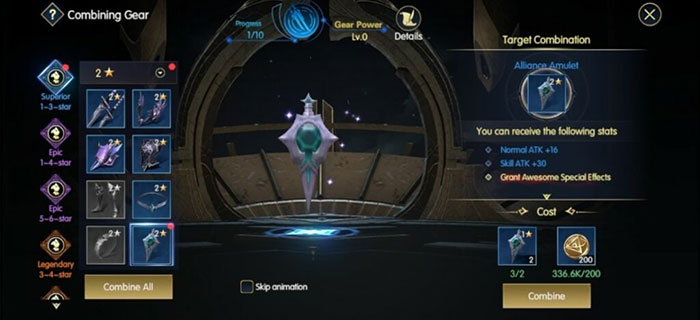 Nếu sở hữu nhiều vật phẩm giống nhau cùng lúc, người chơi có thể được kết hợp chúng với nhau để tăng cấp độ sao, đồng thời làm trống kho đồ. Khi đạt đến số sao tối đa, game thủ có thể rèn chúng lên cấp bậc cao hơn, vì các vật phẩm General sẽ nâng cấp thành vật phẩm Epic và cuối cùng là trở thành cấp Mythic.