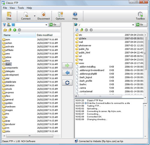 Classic FTP là chương trình máy khách FTP dễ sử dụng, nó cho phép bạn có thể xem, chỉnh sửa, upload, download và xóa các file từ một website nào đó hoặc mạng.