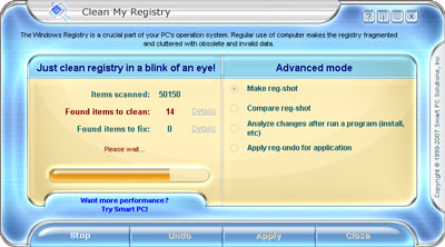Clean My Registry là chương trình đơn giản giúp bạn tìm và loại bỏ khác registry bị lỗi. Bên cạnh đó bạn còn có thể tạo những bản sao lưu registry (snapshots) và so sánh chúng với những khoá regitry sau này để nhận biết những khoá regitry nào đã được thêm vào, thay đổi hay loại bỏ.