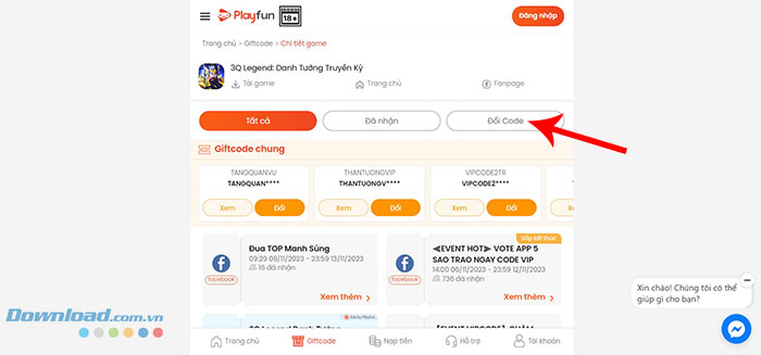 Bước 2: Nhấn vào tab Đổi Code.