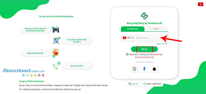 Bước 1: Điều hướng tới trang web https://nap.sohagame.vn/ và đăng nhập vào tài khoản SohaGame.