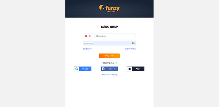 Bước 2: Sử dụng tài khoản Funzy của mình để tiến hành đăng nhập.