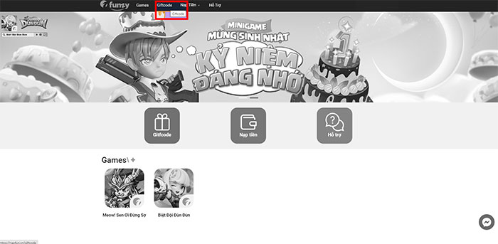 Bước 3: Sau khi đăng nhập, nhấn vào Giftcode ở góc trái phía trên màn hình.