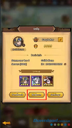 Bước 5: Nhấn nút Redeem để xác nhận dùng code và nhận phần thưởng ngay lập tức trong trò chơi.