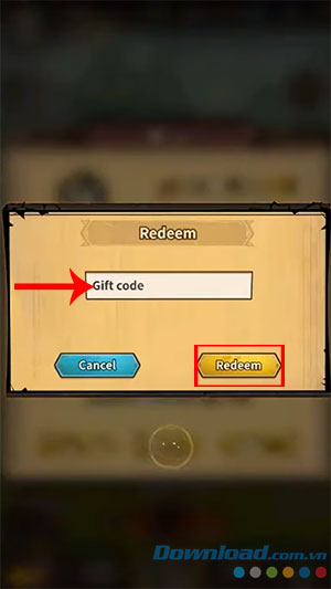 Bước 4: Nhập chính xác hoặc sao chép mã code được cung cấp ở trên và dán vào ô trống Gift code.
