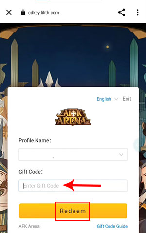 Bước 4: Sau khi đăng nhập thành công, nhập chính xác hoặc sao chép mã code được cung cấp ở mục trên vào ô Enter Gift Code. Cuối cùng nhấn nút Redeem để sử dụng mã và nhận thưởng trong hộp thư của trò chơi.