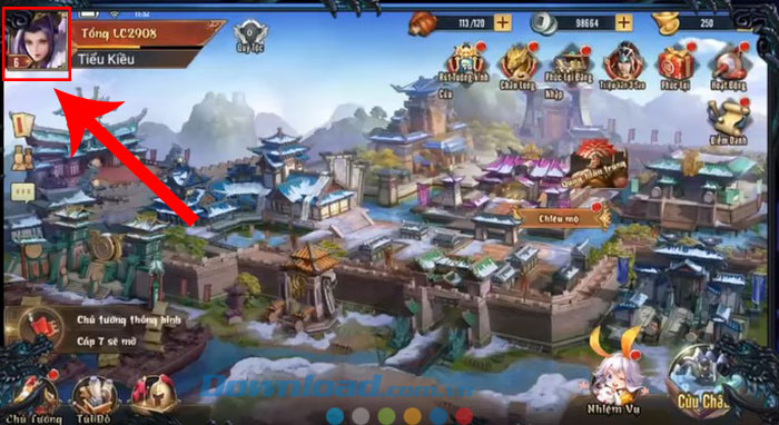 Bước 1: Mở Alo Chủ Tướng - Gamota trên thiết bị và nhấn vào biểu tượng avatar nhân vật ở góc trên cùng bên trái.