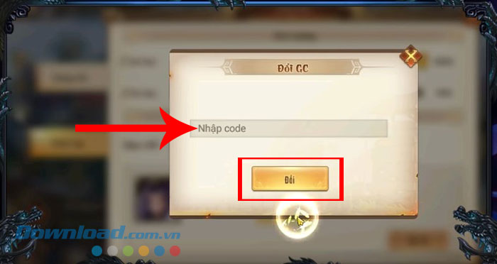 Bước 3: Nhập chính xác hoặc sao chép mã code được cung cấp phía trên và dán vào ô trống và nhấn nút Đổi để xác nhận dùng code.