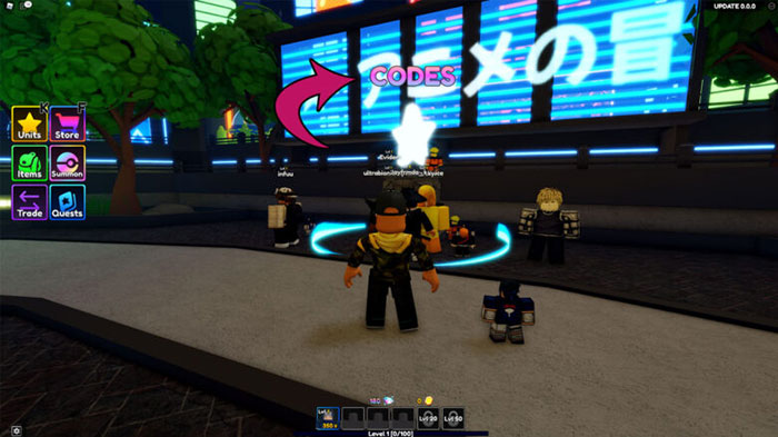 Thao tác nhập code[🏪UPDATE 19.5 + EVENT🔫] AA Anime Adventures rất đơn giản, tương tự như các trò chơi Roblox khác. Tuy nhiên nếu chơi từng sử dụng code các game Roblox trước đây, người chơi cần thực hiện thao tác nhập code với các bước dưới đây: