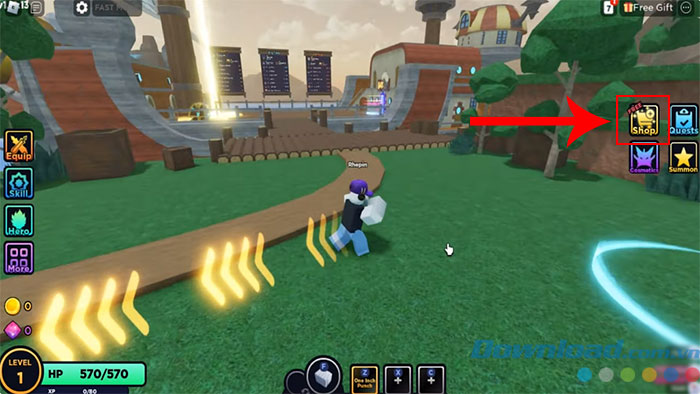 Bước 1: Mở Anime Dungeon Fighters trên Roblox và nhấn vào biểu tượng Shop ở phía bên phải giao diện chính của trò chơi.