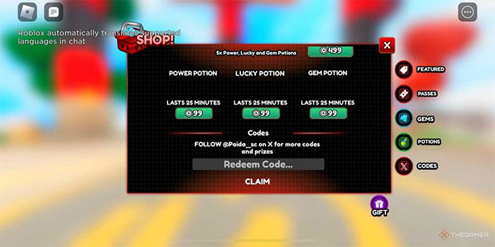 Bước 2: Khi đã ở sảnh chính, hãy nhấp vào biểu tượng Shop ở bên trái màn hình. Sau đó, nhấn vào nút Codes.