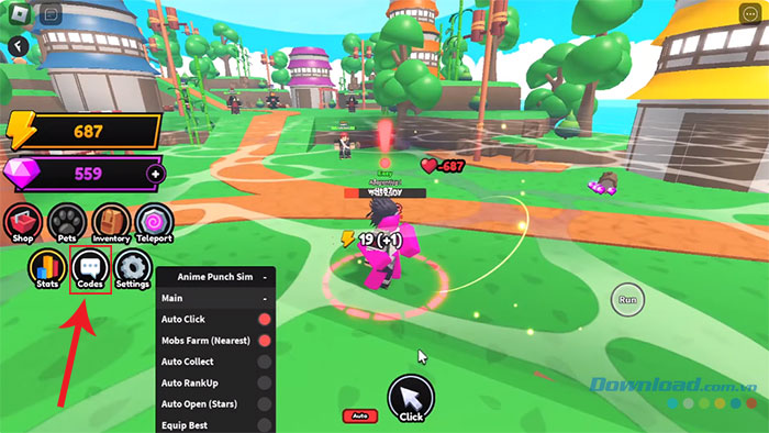 Bước 1: Mở Anime Punch Simulator trên Roblox và nhấn vào nút Codes ở phía bên trái màn hình để mở cửa sổ nhập code.
