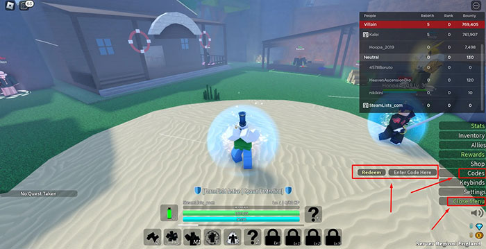 Thao tác nhập code Anime Story rất đơn giản, tương tự các game Roblox khác, với các bước như sau: