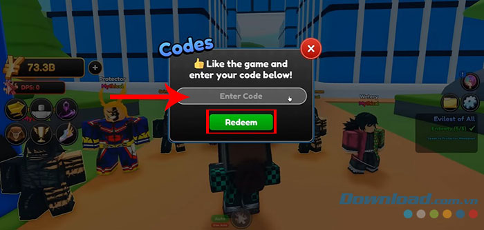 Bước 4: Nhấn nút Redeem để xác nhận dùng code và nhận phần thưởng ngay lập tức trong trò chơi.