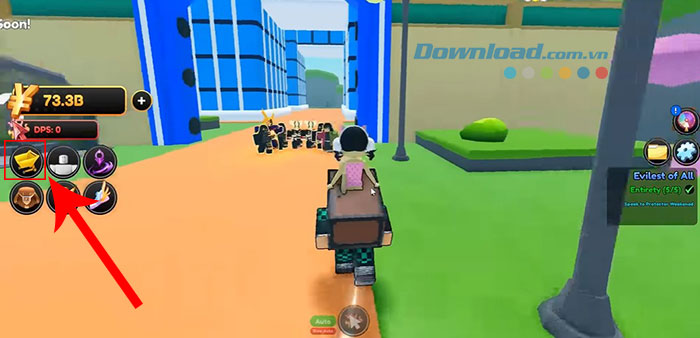 Bước 1: Mở Anime Warriors Simulator 2 trên Roblox và nhấn vào biểu tượng giỏ hàng màu vàng ở giữa bên trái màn hình để mở Shop.