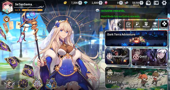 Bước 1: Sau khi mở trò chơi, nhấn vào Menu ở phía bên phải màn hình.